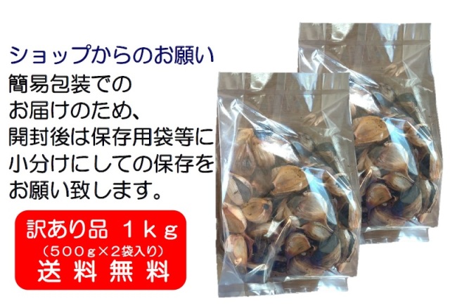 【熟成黒にんにく訳あり品】《簡易包装》 500g×2袋セット(たっぷり1kg入り) ※送料無料 青森県十和田市産福地ホワイト六片種使用!